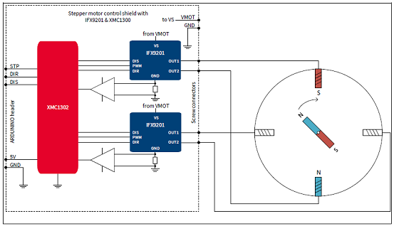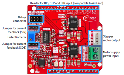 圖9.采用IFX9201和XMC1300的步進(jìn)馬達(dá)驅(qū)動(dòng)擴(kuò)展板概述圖