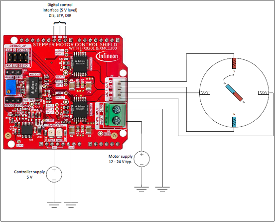 圖12.步進(jìn)馬達(dá)驅(qū)動(dòng)擴(kuò)展板:XMC1302連接概述圖