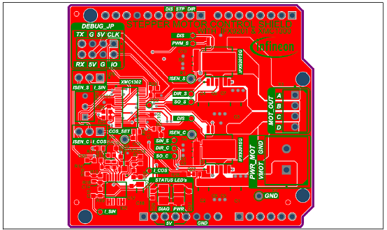 圖14.步進(jìn)馬達(dá)驅(qū)動(dòng)擴(kuò)展板:XMC1302 MCU