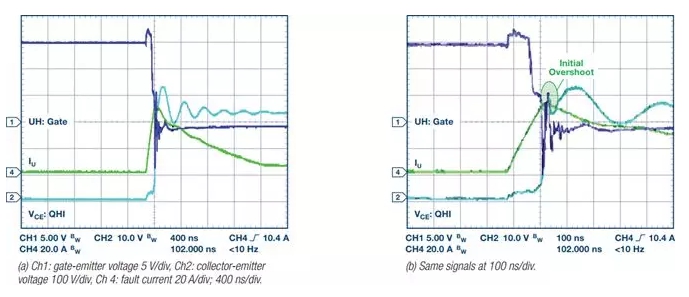 一般而言,電機可在相對較長的時間內(nèi)(毫秒到秒,具體取決于電機尺寸和類型)吸收極高的電流;然而,IGBT——工業(yè)電機驅(qū)動逆變器級的主要部分——短路耐受時間為微秒級。