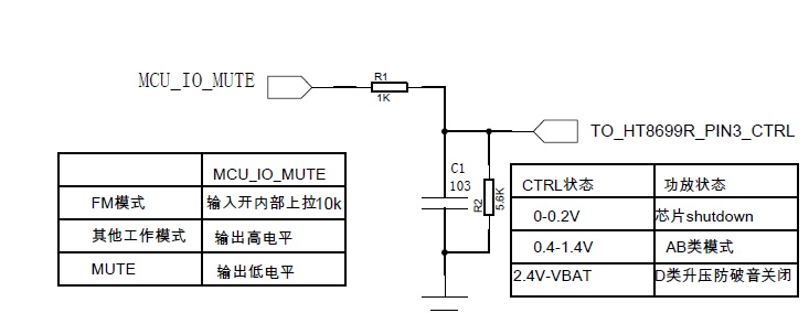 HT8699能通過一個(gè)主控IO口實(shí)現(xiàn)關(guān)斷、開啟、D類/AB類、防破音開啟/關(guān)閉等各種模式的切換,節(jié)省藍(lán)牙主控的資源,外圍簡單。