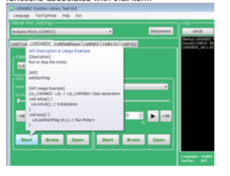 由于開發(fā)套件可支持基于不同類型電機(jī)的設(shè)計(jì),用戶可以看到安森美半導(dǎo)體的電機(jī)方案GUI為與所用電機(jī)類型相匹配而改變。GUI支持簡(jiǎn)單的參數(shù)設(shè)置和電機(jī)驅(qū)動(dòng)器IC的配置,而不需要經(jīng)常參考說明書。實(shí)際應(yīng)用是,開發(fā)人員可以在沒有深入了解所用電機(jī)的情況下進(jìn)行設(shè)計(jì)。這加速了電機(jī)控制的設(shè)計(jì)進(jìn)程,得益于一個(gè)快速高效的開發(fā)環(huán)境。例如,僅通過設(shè)置目標(biāo)速度,就可以使用電機(jī)驅(qū)動(dòng)API函數(shù)庫(kù)“setTargetDrive()”來控制LV8548有刷直流電機(jī)控制驅(qū)動(dòng)器。