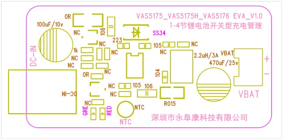 深圳市永阜康科技有限公司力推管腳兼容的兩節(jié)、三節(jié)、四節(jié)鋰電池串聯(lián)同步降壓型充電管理芯片系列—VAS5175A/VAS5175H/VAS5176。該系列芯片5V-24V輸入寬泛的輸入電壓,充電電流2A;效率93%;采用ESOP-8封裝極簡外圍。VAS5175A主要針對單節(jié)、兩節(jié)串聯(lián)鋰電;VAS5176針對三節(jié)、四節(jié)串聯(lián)鋰電;VAS5175H針對充滿電為4.35V或者8.7V的特殊應(yīng)用。