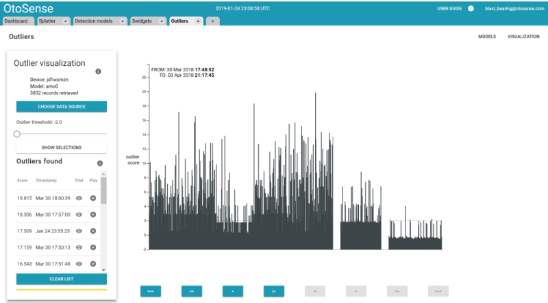 特征屬于物理領(lǐng)域,含義屬于人類認知。要將特征與含義聯(lián)系起來,需要 OtoSense AI 和人類專家之間展開互動。我們花了大量時間研究客戶的反饋,開發(fā)出人機界面 (HMI),讓工程師能夠高效地與 OtoSense 交互,設(shè)計出事件識別模型。這個 HMI 允許探索數(shù)據(jù)、標記數(shù)據(jù)、創(chuàng)建異常模型和聲音識別模型,并測試這些模型。