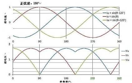 另外一種方法是為電機施加更平滑的電流波形,這稱之為“正弦波”控制或“180度”。與梯形控制相比,當與合適的電機配合使用時,這種控制方法能夠提高效率,降低噪音。缺點是要實現平滑電壓和電流分布,復雜性比較高,通常需要更準確的脈寬調制(PWM)計時器。