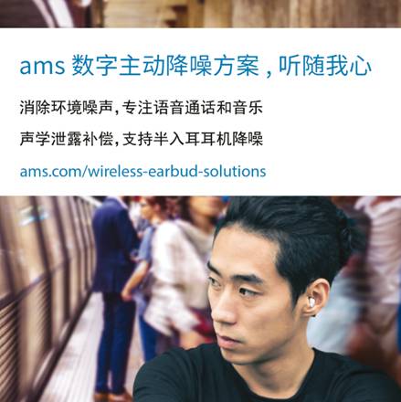 全球領(lǐng)先的高性能傳感器解決方案供應(yīng)商艾邁斯半導(dǎo)體(ams AG,瑞士股票交易所股票代碼:AMS)今日發(fā)布一項全新的數(shù)字降噪技術(shù),配合最熱門、舒適度更高的真無線耳塞,此技術(shù)會給音樂欣賞、語音通話甚至整個世界的音頻交互帶來全新體驗。