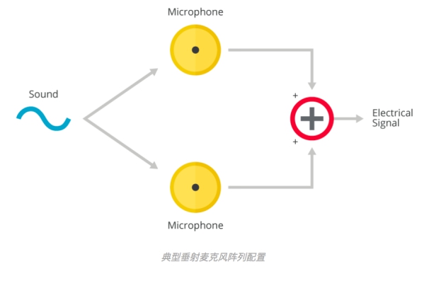 許多麥克風(fēng)應(yīng)用都有特定的來(lái)源,以獲得所需的聲音。因此,通過(guò)“收聽(tīng)”指定方向的聲音并“忽略”其他方向的聲音,可以提高系統(tǒng)的 SNR。垂射麥克風(fēng)陣列是垂直于所需聲源放置的一維或二維麥克風(fēng)陣列,可將各個(gè)麥克風(fēng)發(fā)出的信號(hào)相加,從而產(chǎn)生所需的電信號(hào)。垂直于陣列的方向產(chǎn)生的聲音將同時(shí)到達(dá)麥克風(fēng),因此可在電子處理中積極相加。除垂直于陣列之外的方向產(chǎn)生的聲音到達(dá)麥克風(fēng)的時(shí)間具有不同程度的延遲。通常,具有不同時(shí)間延遲的信號(hào)不會(huì)“順利”相加,會(huì)產(chǎn)生較低水平的電子信號(hào)。