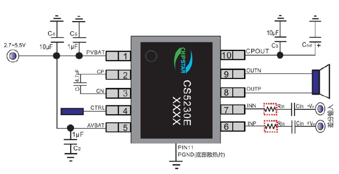 CS5230(ESOP-10內(nèi)置無電感電荷泵升壓5W防破音單聲道音頻功放IC)