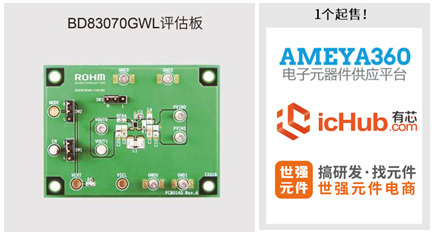 本產(chǎn)品已于2019年4月開始出售樣品(樣品價格300日元/個,不含稅),計劃于2019年10月開始暫以月產(chǎn)100萬個的規(guī)模投入量產(chǎn)。前期工序的生產(chǎn)基地為ROHM Hamamatsu Co.,Ltd.(日本濱松市),后期工序的生產(chǎn)基地ROHM Apollo Co., Ltd.(日本行橋市)。此外,搭載本產(chǎn)品的評估板“BD83070GWL-EVK-001”也與本新聞稿發(fā)布同期開始網(wǎng)售,客戶可從Ameya360、icHub、Sekorm購買。