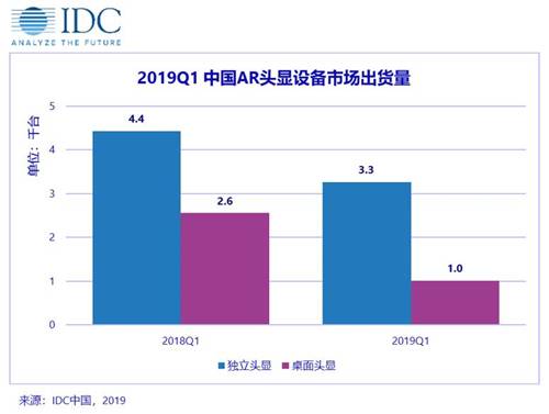 國際數(shù)據(jù)公司(IDC)近期發(fā)布的《中國VR/AR市場季度跟蹤報告》顯示,2019年第一季度中國地區(qū)頭顯設(shè)備出貨量接近27.5萬臺,同比增長15.1%。其中VR頭顯設(shè)備出貨量同比增長17.6%,增量主要來自于桌面頭顯以及獨立頭顯設(shè)備市場,各細分市場中頭部廠商市場占比逐漸拉大。