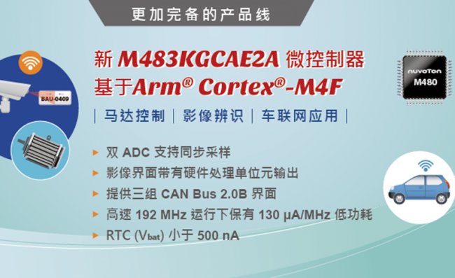 新唐科技發(fā)表新型號 NuMicro® M480 系列 M483KGCAE2A,提供雙 ADC 與影像輸入,適用于馬達控制與影像辨識。
