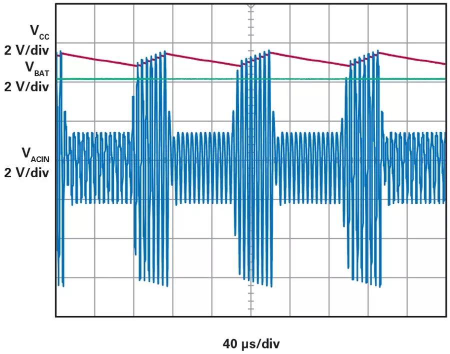 如果LTC4126接收的能量超出所需能量,無(wú)線(xiàn)功率控制器通過(guò)將接收器諧振電路分流接地來(lái)調(diào)節(jié)線(xiàn)性充電器的輸入VCC。這樣,線(xiàn)性充電器將高效運(yùn)行,因?yàn)槠漭斎胝帽3衷陔姵仉妷篤BAT之上。接合分流電路時(shí),諧振電路也會(huì)接收較少的功率,因?yàn)橹C振頻率與發(fā)射器頻率失調(diào)。