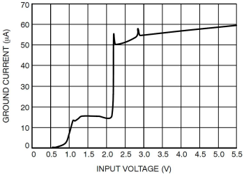 地電流是LDO正常工作時地引腳流過的電流,是LDO工作時自身消耗的電流,也等于輸入電流與負(fù)載電流的差,當(dāng)輸出電流為0時,該電流又稱靜態(tài)電流。通常地電流小的LDO的其他參數(shù)性能相對比較差,反之亦然。一般在電池供電場合,地電流小的LDO,能夠提高設(shè)備的續(xù)航時間和供電效率。通常地電流與輸入電壓、溫度和負(fù)載電流等有關(guān)。圖2是某LDO地引腳電流與輸入電壓的關(guān)系曲線,通常來說地電流會隨著輸入電壓的增大而增大。