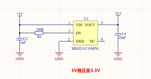 最后,就是3.3V電壓的穩(wěn)壓電路了,關(guān)于3.3V電壓其實(shí)有兩種渠道可以獲得,一是從5V得到,另外一種就是從3.8V得到。由于筆者這里的3.8V是要給4G模塊供電的,而且,出于省電考慮,在平時(shí)用不上4G模塊的時(shí)候,是需要將4G模塊的電源單獨(dú)斷開的,而MCU和其他的3.3V的模塊又是需要一直上電的,因此,這里就不能直接用3.8V來(lái)穩(wěn)壓了。關(guān)于3.3V的穩(wěn)壓芯片實(shí)在是太多了,筆者也就隨手選了一個(gè)性價(jià)比還不錯(cuò)的ME6211來(lái)使用了。