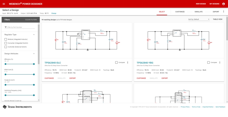 選擇眾多器件后,WEBENCH Power Designer會為每個器件執(zhí)行詳細(xì)設(shè)計。