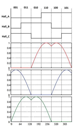 此外,梯形技術(shù)最容易實(shí)現(xiàn),因此也最受歡迎。 電機(jī)每相由直流供電,每 60? 進(jìn)行換向。 相位驅(qū)動(dòng)為“高”、“低”或保持浮動(dòng)狀態(tài)。