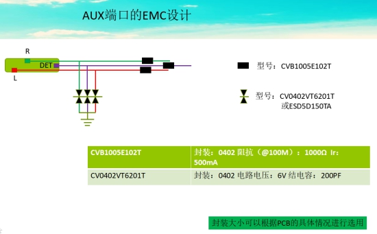 再此也設(shè)計(jì)出一般AUX的靜電以及EMI防護(hù)方案: