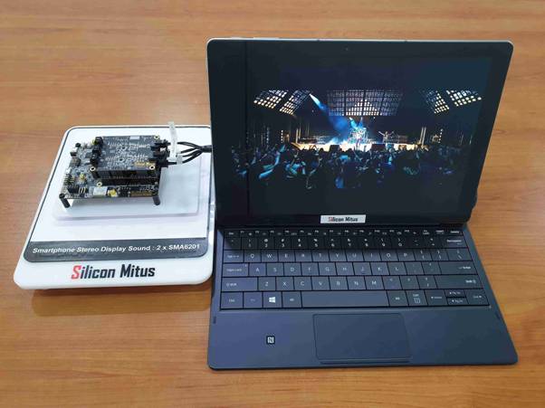 除此之外,在現(xiàn)場(chǎng)還可以欣賞與屏幕發(fā)聲完美結(jié)合的壓電陶瓷驅(qū)動(dòng)芯片(Piezo Driver),也就是Silicon Mitus的SMA6201產(chǎn)品。這款產(chǎn)品可適用于智能手機(jī)、平板、筆記本和臺(tái)式電腦。通過在顯示面板上引起的細(xì)微震動(dòng),全屏可自發(fā)聲。
