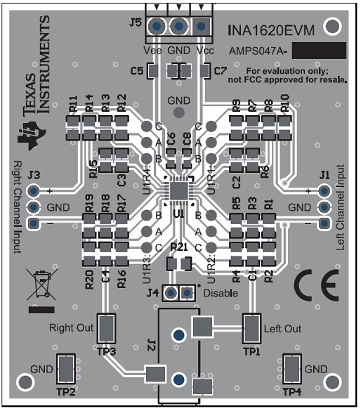 圖6.INA1620 EVM PCB設(shè)計圖:頂層布局