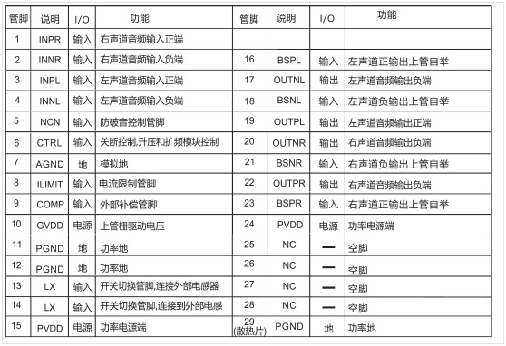 3.7V鋰電池供電依然是現(xiàn)階段便攜式音箱主流方式。在有限的電池電壓前提下為了把輸出功率做大,功放芯片內(nèi)置升壓模塊把升壓值再提高。此時,要考慮到效率問題,理論上升壓越高,壓差越大,效率越低。CS83785是一款內(nèi)置升壓音頻功放IC,3.7V鋰電池供電內(nèi)置升壓到8.5V,能提供2×10W持續(xù)功率輸出。效率最高達85%,這就保證了輸出功率恒定以及整機溫升在正常范圍之內(nèi),以及鋰電池的續(xù)航時間。CS83785另一個亮點是可以支持外接12V電源直供,此時能提供2×18W輸出功率。還有其他豐富的功能以及性能:兩種防破音可選、擴頻模式、過流保護、短路保護、過熱保護等。采用簡潔的EQA28封裝設計生產(chǎn)也非常方便。