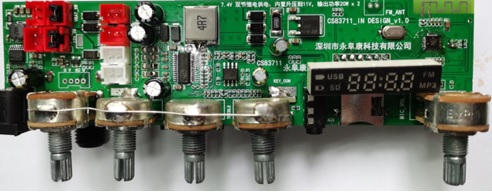 10.基于CS83711 兩節(jié)鋰電內(nèi)置升壓2×20W藍(lán)牙戶外音箱方案DEMO板實物圖