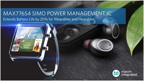 | Maxim發(fā)布下一代SIMO電源管理IC,使可穿戴及耳戴式設備方案尺寸減半、電池壽命延長20% |