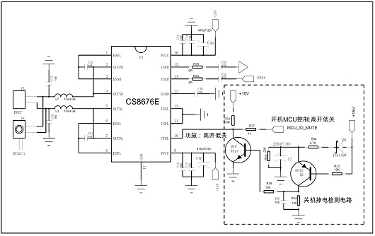 由于主控解碼芯片音頻模擬輸出的偏置電壓一般在輸出使能后建立,此時(shí)需要保持音頻功放CTRL管腳拉低(高開(kāi)低關(guān)),等待主控芯片模擬輸出的偏置電壓穩(wěn)定后才可以將CTRL管腳 置高開(kāi)啟功放。相反,關(guān)機(jī)時(shí),需要關(guān)閉主芯片音頻模擬輸出功能時(shí),需要先拉低CTRL管腳將功放關(guān)閉后,再關(guān)閉主控芯片的模擬輸出信號(hào)。這樣的時(shí)序是為了保證主芯片模擬輸出的偏置電壓掉電時(shí)不會(huì)引起POP 聲。通過(guò)主控軟件調(diào)整時(shí)序解決開(kāi)關(guān)機(jī)POP聲對(duì)軟開(kāi)關(guān)機(jī)音箱非常適用,對(duì)硬開(kāi)關(guān)機(jī)的音箱開(kāi)機(jī)也很好處理,但關(guān)機(jī)由于主控不受控,需要外圍加掉電檢測(cè)電路來(lái)解決。