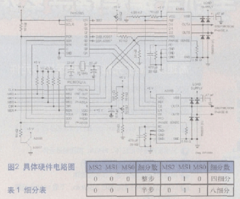 通常步進電機的脈沖控制是由邏輯電路或?qū)S眯酒瑢崿F(xiàn)的脈沖環(huán)形分配的,因A3955不自帶環(huán)形分配功能,本設(shè)計采用兩片A3955驅(qū)動步進電機的兩個線圈,來實現(xiàn)脈沖環(huán)形分配的實現(xiàn)。
