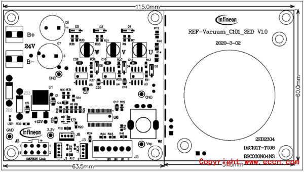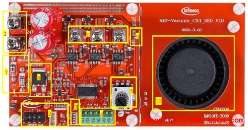 圖8. 參考設計REF-Vacuum-C101-2ED外形圖和功能分布圖(正視)