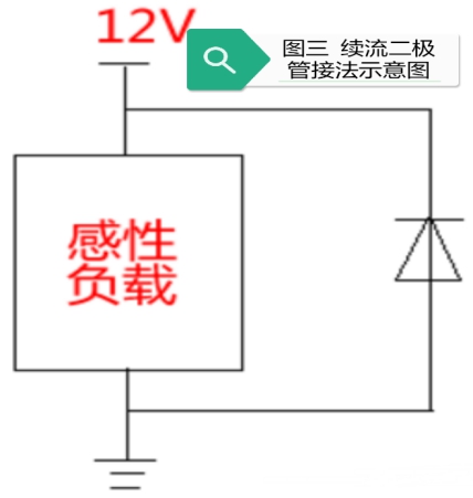 最后來說一下開關(guān)電源在實(shí)際使用過程中一個需要格外注意的事項(xiàng),在驅(qū)動電磁式繼電器此類在關(guān)斷瞬間會產(chǎn)生極高反向電動勢的(等效為)電感負(fù)載時,我們需要在這類器件的線圈兩端反并一支二極管(通常選擇型號為1N4007),用以泄放掉反向電動勢,這支二極管被稱為:續(xù)流二極管。繼而避免開關(guān)電源因此發(fā)生損壞(原理圖見三)!