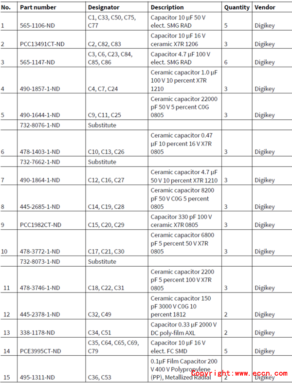主板材料清單: