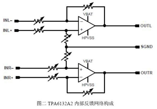 因?yàn)槎鷻C(jī)對(duì)于放大器直流分量過(guò)于敏感,且HPVSS 并不完全對(duì)稱(chēng)與VBAT,因此需要引入直流反饋來(lái)減小輸出的直流分量,因此需要將INL-和INR-通過(guò)一個(gè)直流反饋電容接地。