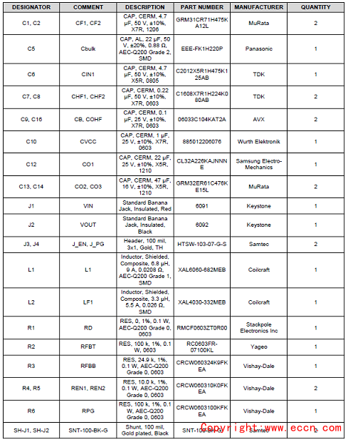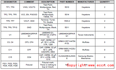 評估模塊LM60440AQEVM材料清單: