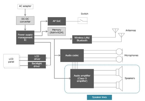 在揚(yáng)聲器輸出相對(duì)較。100 mW至2W)的智能手機(jī)和其他設(shè)備的揚(yáng)聲器線路中,通常使用不帶LPF的D類放大器。聲音失真度通常以數(shù)字形式表示為總諧波失真加噪聲(THD + N);其值越低,聲音質(zhì)量越好。