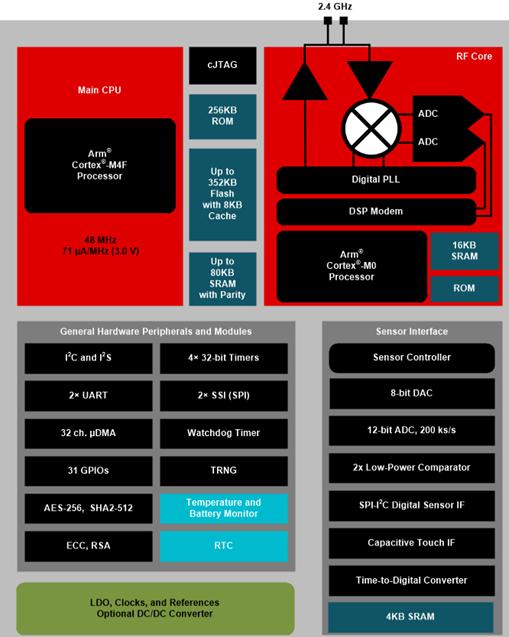 其中最重要的部分是SimpleLink CC2662R-Q1無線MCU,符合AEC-Q100標準。該芯片基于Arm Cortex-M4,片上集成了豐富模擬外設,以及射頻子系統(tǒng)。芯片集成了專用的無線BMS協(xié)議棧,采用2.4GHz頻段(2402-2480 MHz),并內(nèi)置TI-RTOS,從而支持快速組網(wǎng)。