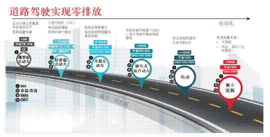 圖1:從混合動力到電動汽車的路線圖