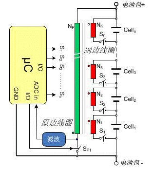 相對(duì)被動(dòng)平衡,不僅提供低頂部均衡,也可以實(shí)現(xiàn)底部均衡,當(dāng)某節(jié)電池電壓過低時(shí),通過接在電池組上的繞組可以把電池組的能量轉(zhuǎn)移到該節(jié)電池上,提高的系統(tǒng)能量的利用率