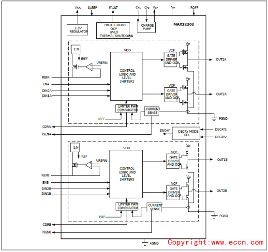 圖1.MAX22203簡(jiǎn)化框圖