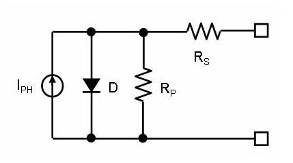 并行電阻 (RP) 表示實(shí)際電池發(fā)生的較小漏電流,而 Rs 則表示連接損耗。隨著負(fù)載電流的增加,太陽(yáng)能電池生成的電流會(huì)有更多一部分偏離二極管而進(jìn)入負(fù)載。對(duì)大多數(shù)負(fù)載電流值來(lái)說(shuō),這對(duì)輸出電壓僅產(chǎn)生很小的影響。