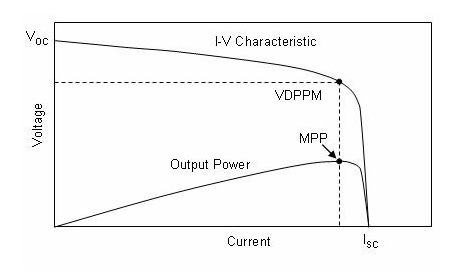 在大多數(shù)應(yīng)用中,理想情況是盡可能從太陽(yáng)能電池獲得最大電力。由于輸出功率是輸出電壓與電流的乘積,因此我們應(yīng)明確電池哪部分工作區(qū)能實(shí)現(xiàn)最大的輸出電壓與電流乘積值,即所謂的最大功率點(diǎn) (MPP)。在一種極端情況下,輸出電壓為最大值(VOC),但輸出電流為零;在另一種極端情況下,輸出電流為最大值 (ISC),但輸出電壓為零。在上述兩種情況下,輸出電壓與電流的乘積均為零,因此,MPP 必須在兩種極端情況之間。
