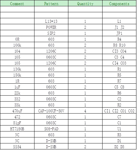 HT7180應(yīng)用于單節(jié)鋰電池升壓、雙節(jié)鋰電池升壓典型參數(shù)如下: