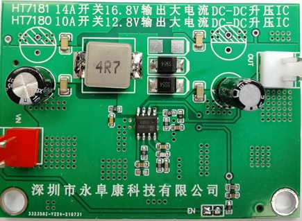 深圳市永阜康科技有限公司針對(duì)升壓值13V以下的DC-DC升壓應(yīng)用需求,推廣一款集成10A開關(guān)管的12.8V輸出、大電流非同步DC-DC升壓IC:HT7180。HT7180采用獨(dú)到的電路研發(fā)技術(shù)以及先進(jìn)的半導(dǎo)體工藝制程,基于SOP8封裝,工作效率高達(dá)90%以上,無需外加散熱器,3.7V輸入升壓到12V,可穩(wěn)定輸出2A電流。