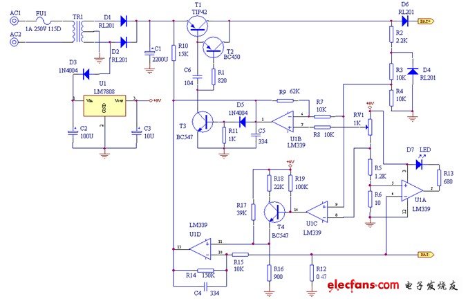 | 恒流限壓式鉛酸電池充電器電路圖 |