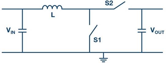 如果需要從低電壓生成高電壓,可采用升壓轉(zhuǎn)換器。它是三種基本開關(guān)穩(wěn)壓器拓?fù)渲械囊环N,僅需兩個(gè)開關(guān)、一個(gè)電感以及輸入和輸出電容。除了升壓轉(zhuǎn)換器以外,其他基本拓?fù)浣Y(jié)構(gòu)還包括降壓轉(zhuǎn)換器和反相降壓-升壓轉(zhuǎn)換器。圖1顯示了升壓轉(zhuǎn)換器的原理圖。在導(dǎo)通期間,開關(guān)S1閉合,電能存儲(chǔ)在線圈L中,電感電流隨輸入電壓與地電位之間的差值線性增加;也就是說,隨輸入電壓而增加,在關(guān)斷期間,當(dāng)S1開啟且S2閉合時(shí),存儲(chǔ)在電感中的電能提供至輸出端。電感兩端的電壓在此時(shí)間段內(nèi)等于輸出電壓減去輸入電壓。