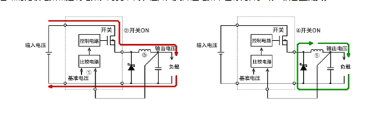 與基準(zhǔn)電壓進(jìn)行比較,檢查輸出電壓是否為設(shè)定電壓低于設(shè)定電壓時,開關(guān)變?yōu)镺N,從輸入向輸出供電。此時,電感會蓄積磁能,如果輸出電壓高于設(shè)定電壓,則開關(guān)OFF電感所蓄積的磁能變?yōu)殡娏鞅还┩敵鲐?fù)載,再返回電感電感的磁能消失,輸出電壓開始下降時,開關(guān)會再度為ON實(shí)際電流及電壓的開關(guān)波形也有記載。S1為MOSFET的開關(guān)晶體管、D1為肖特基二極管、L1為電感、C1為輸出電壓、VIN為輸入電壓。