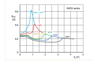 圖1 NX3L的典型導通電阻v開關輸入電壓