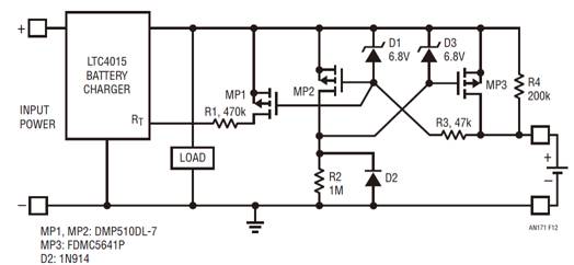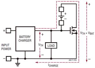 請注意,不論什么情況,電池充電器和負(fù)載電壓都不會出現(xiàn)負(fù)電壓傳送。