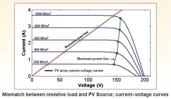 大多數(shù)傳統(tǒng)能源(電源)作為具有固定參數(shù)(如內(nèi)阻)的電流或電壓源表現(xiàn)相對(duì)較好,而太陽(yáng)能電池則具有不尋常的特性,需了解這些特性,以便盡可能多地捕捉其輸出。設(shè)計(jì)者的目標(biāo)是從太陽(yáng)能電池獲得最大功率,而不管輸出電壓和電流,因?yàn)檫@兩個(gè)量都會(huì)隨著工作條件的變化而變化。