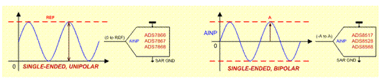 盡管大部分單端 SAR ADC 都可處理單極性信號,但一部分可用于處理幅值 (A) 可輕松超過電源的雙極性信號。有些支持一個通道,有些則支持多個通道。使用單端 ADC 輸入的一個常見應(yīng)用是電源電壓監(jiān)控。