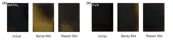 聚乙烯吡咯烷酮是一種長鏈絕緣聚合物,具有高密度的極性羰基,將其引入太陽電池中,可以包裹MAPbI3,形成疏水“屏障”,阻止水分子的入侵。